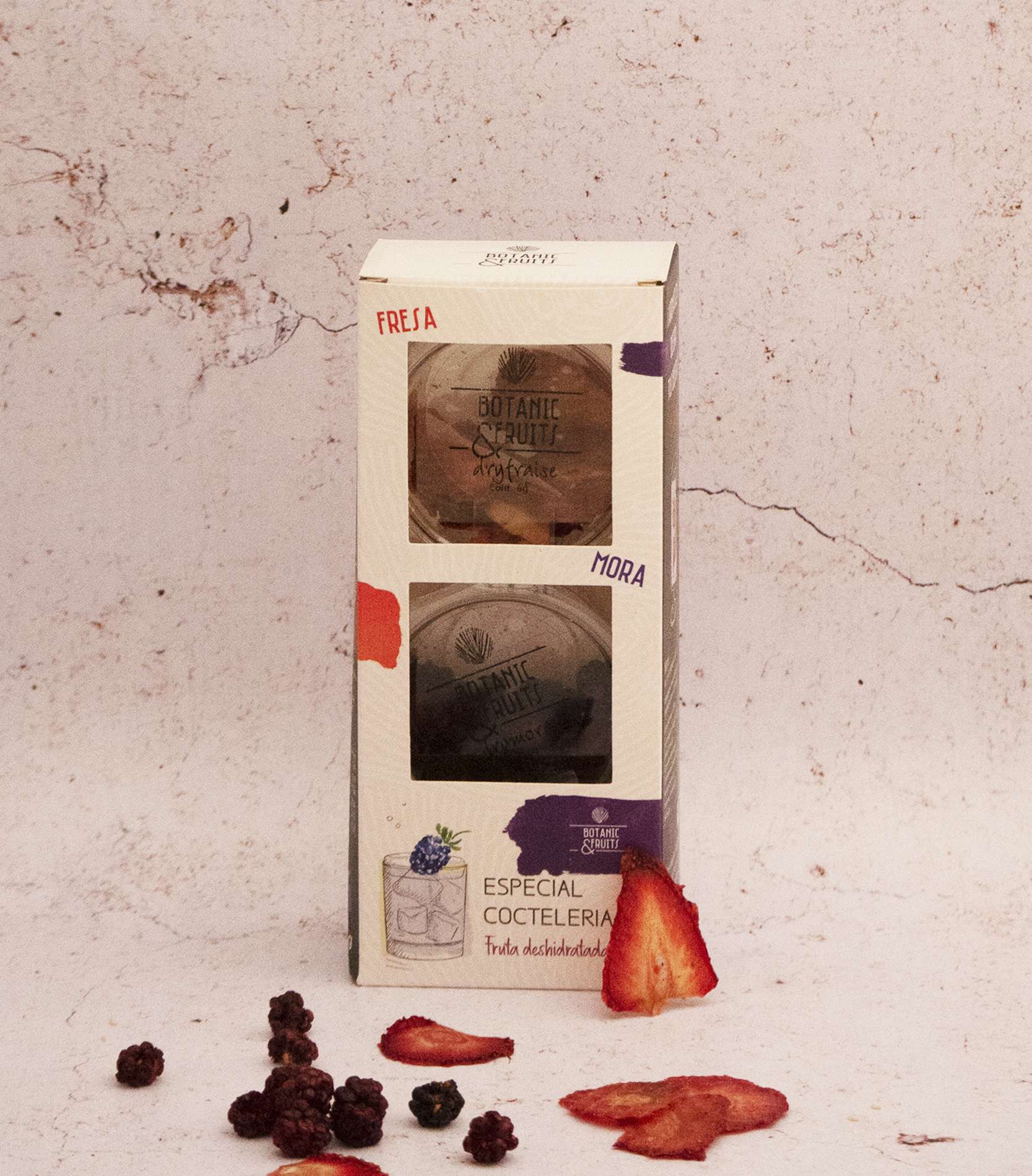 Le pack de fraises et mûres déshydratées Botanic & Fruits apporte élégance à vos cocktails et leur ajoute un supplément d’arômes fruités au nez.