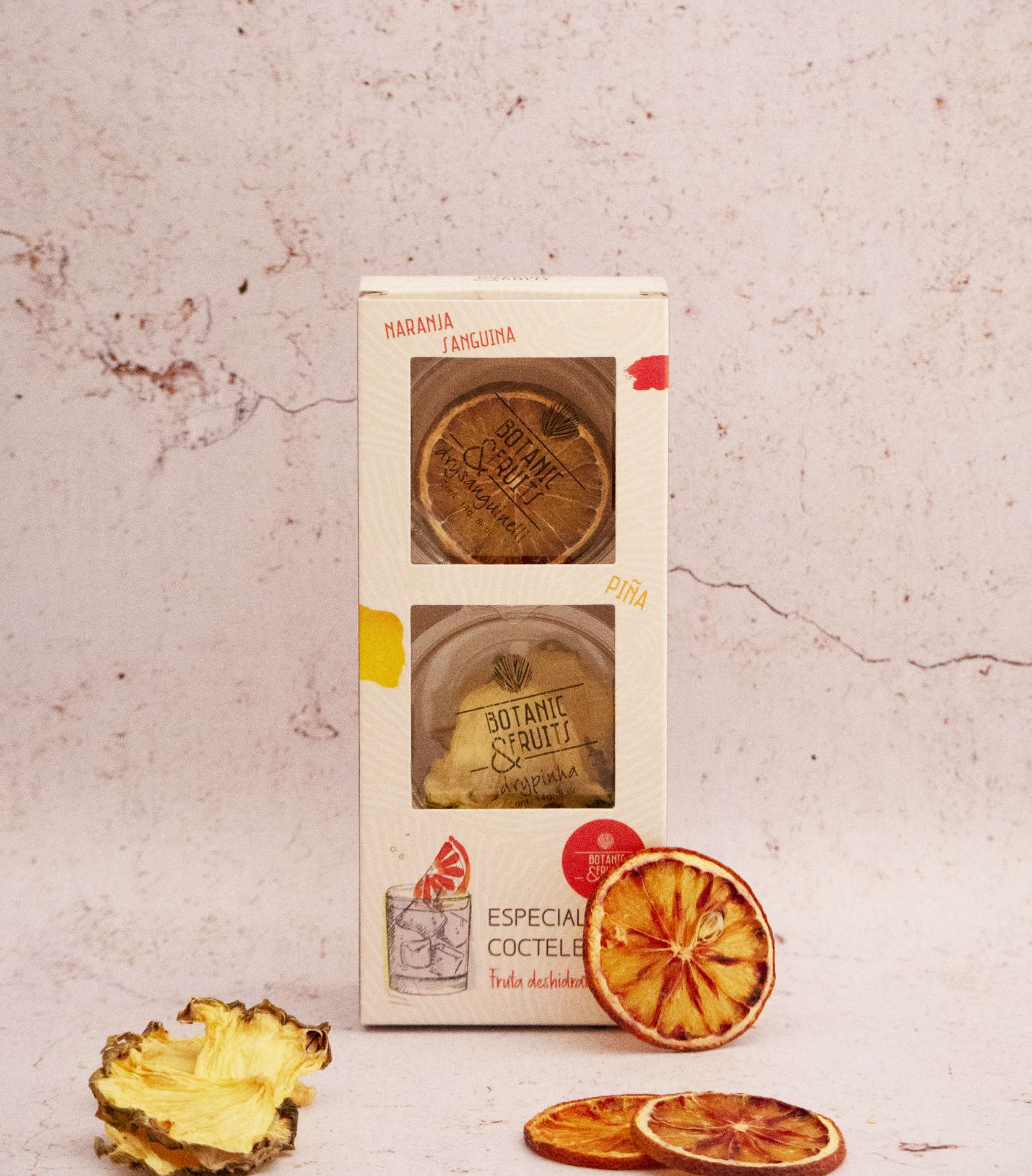 Les oranges sanguines et ananas séchés Botanic & Fruits apporteront élégance et originalité au service de vos cocktails et leur ajouteront de subtils et agréables arômes fruités.